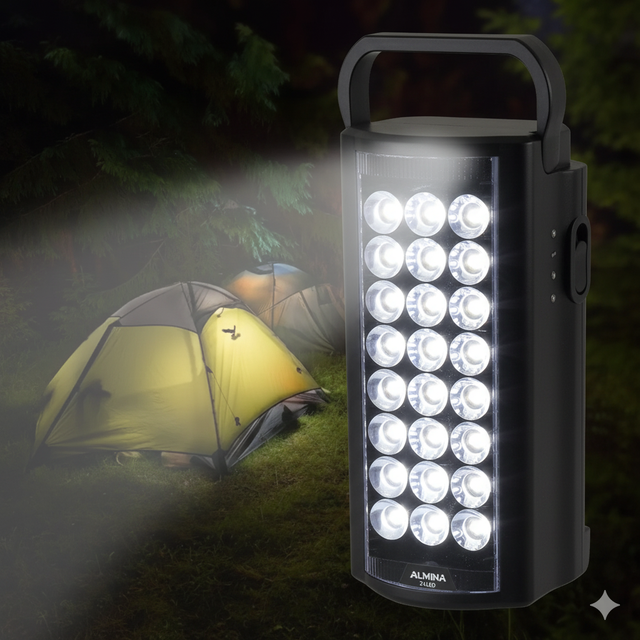 У фонаря два режима освещения: 1. работа 8-и светодиодов и 2. работа 24-х светодиодов. Фонарь может освещать помещение 30-ь часов с 24 светодиодами и дает возможность освещения в течении 80-и часов с 8 светодиодами.